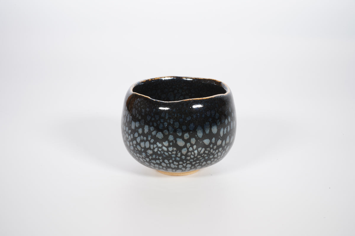 焼き物の至宝とされる天目。幽玄な景色は、窯中でおこる釉薬の変化によるものです。宇宙のような銀河のような不思議な色調は、偶然の産物で一つとして同じものはありません。見る角度によって色調は変化し、お酒を入れると光の屈折でさらに多彩な変化を楽しむことができます。