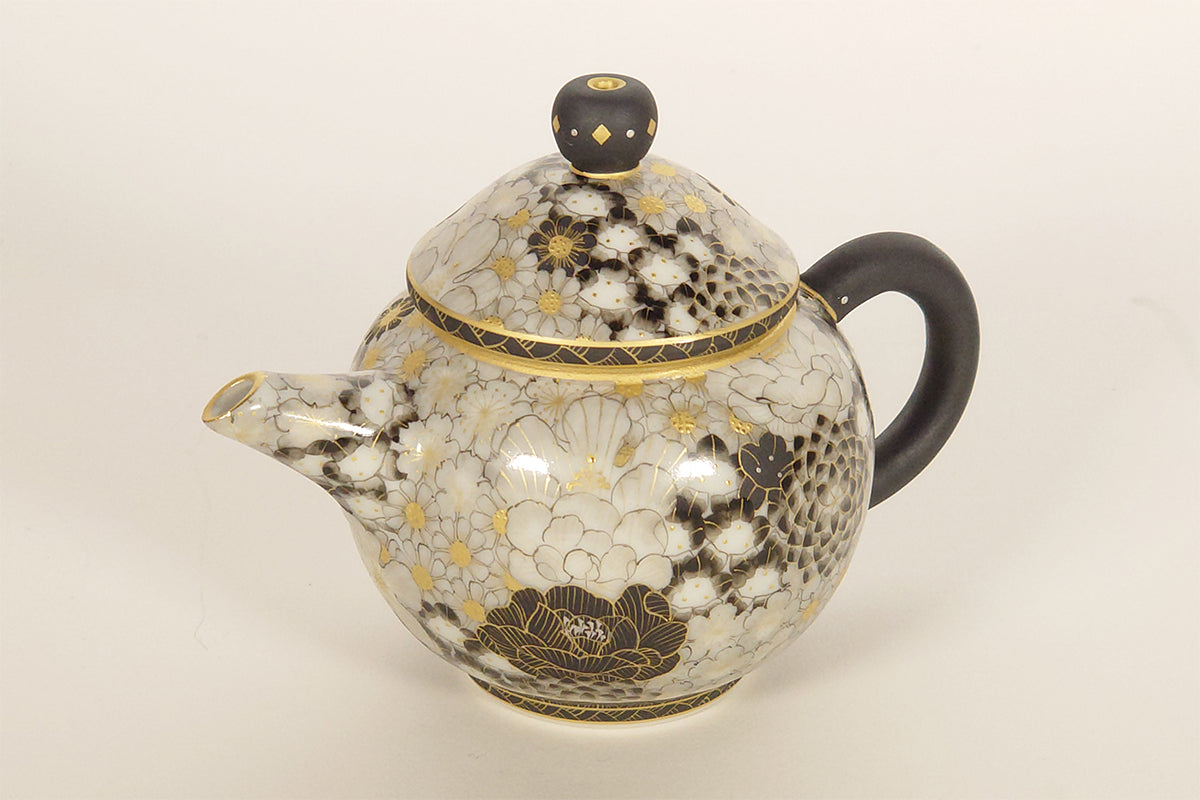 小さな茶注の上に描かれる細く精密な金彩は必見。