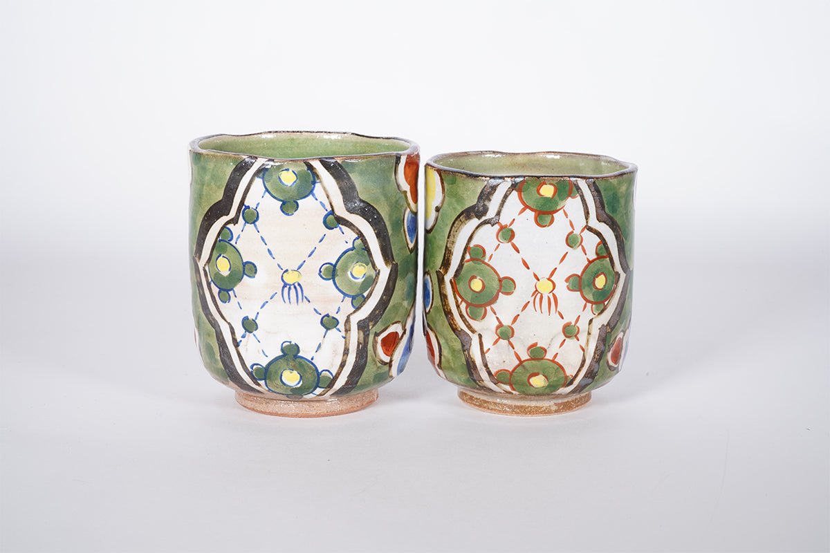 鮮やかな色彩の瓔珞文が描かれた湯呑です。